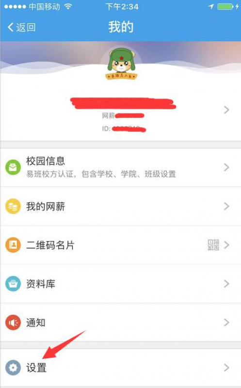 登录最新版本的易班手机客户端进入到首页后点击左上角的“头像”后点击“设置”